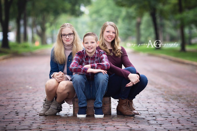 I love to hear how important family photos are to people, so it was awesome to get a call from this family (Mom) who tells me that what she wants for her 50th Birthday is a photo session with her family! Perfect! Of course I know that having your picture taken is not everyone’s favorite thing to do, but they all wanted Mom to have her gift! We had a very nice session close to home – a nearby park and brick street. Rain was coming but we were able to get the session in before it hit. I have photographed this family a few times now, and it is always such a pleasure to work with them. Thank you B family for a lovely session and Happy 50th Birthday Melissa!