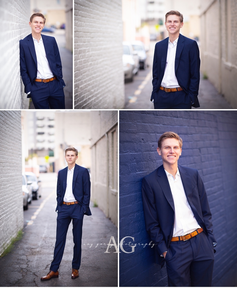 One more senior for today…meet Justin, a handsome 2021 grad that I had the pleasure of working with this spring! Great session and what a smile! I loved the blue suit on him and loved how it popped against some of the different brick walls in town. Thanks Justin for a wonderful session. Wishing you all the best in college and the years ahead!